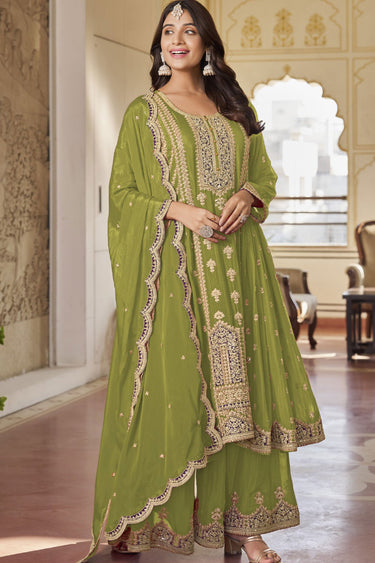 Embroidered Chinon Fabric Readymade Palazzo Salwar Kameez