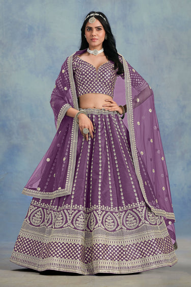 Embroidered Designs Art Silk Purple Lehenga Choli