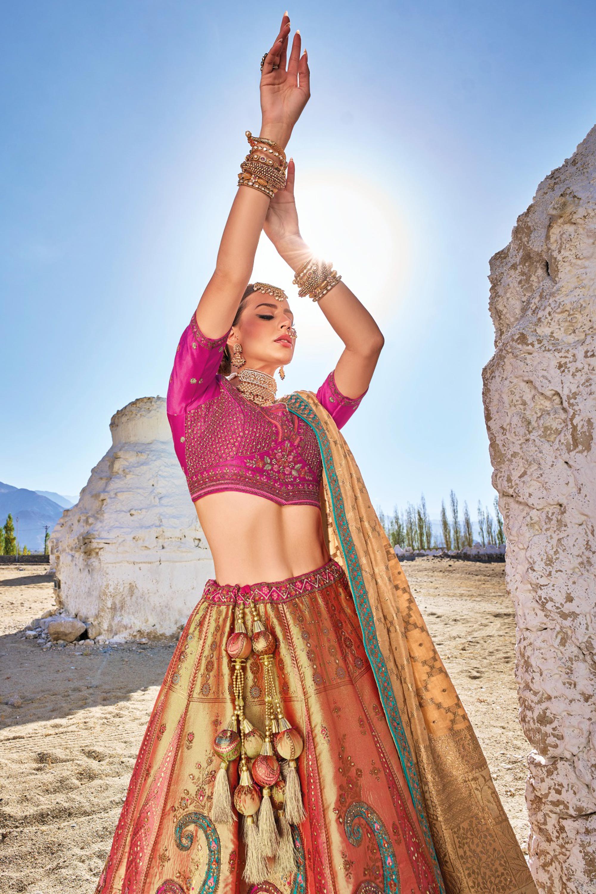 Embroidered Multi Color Bridal Lehenga In Banarasi Silk Fabric With Designer Choli