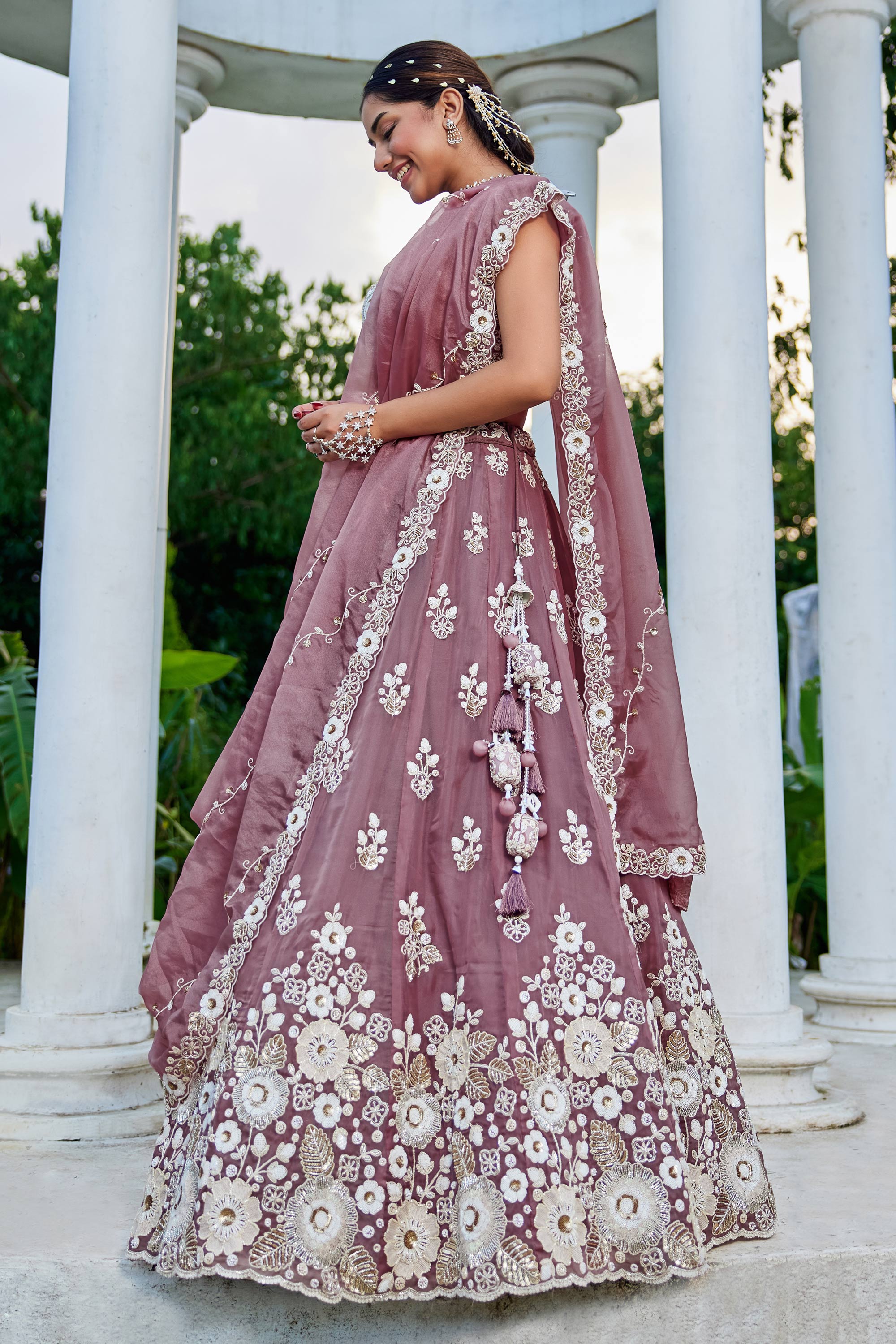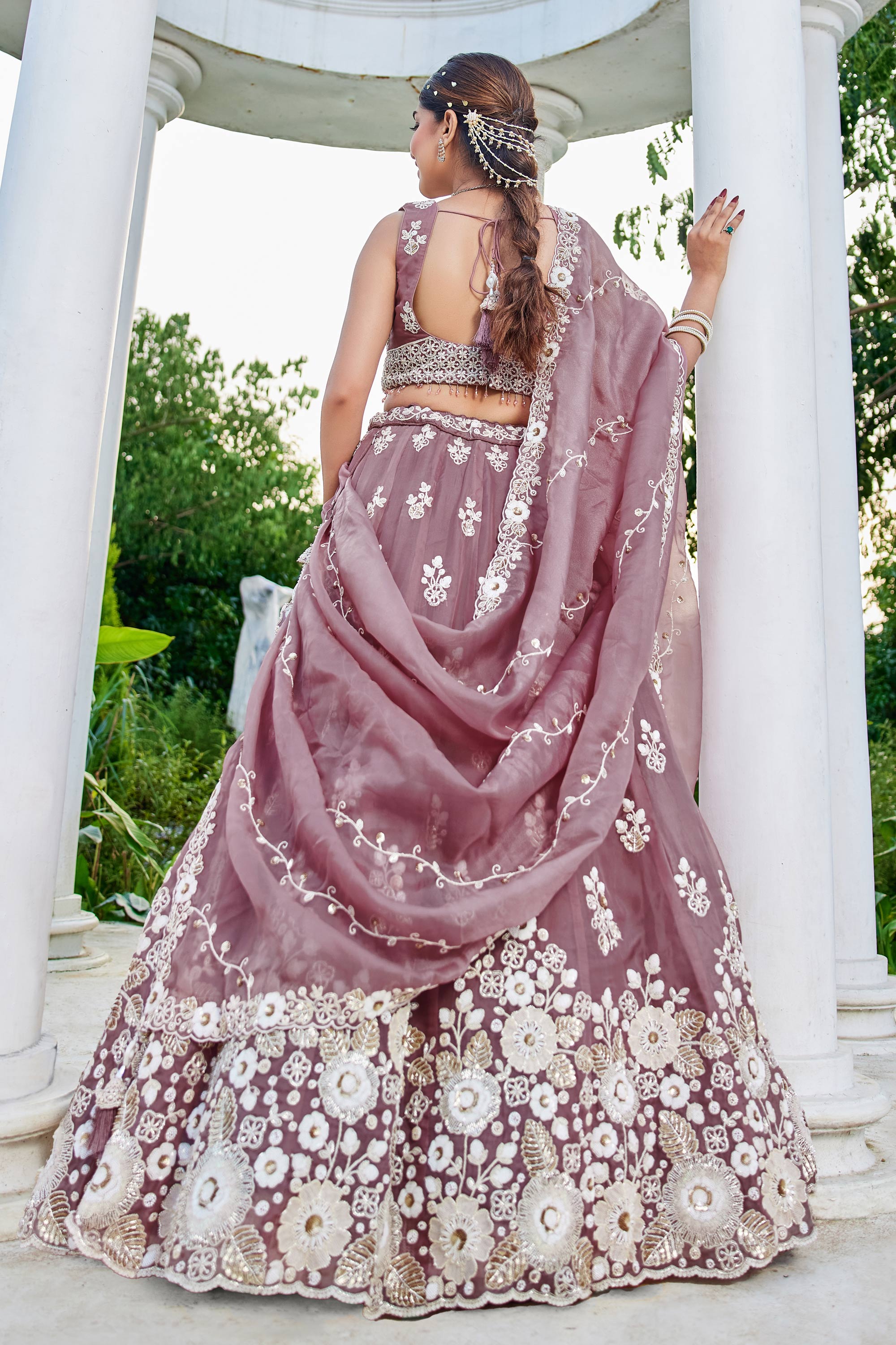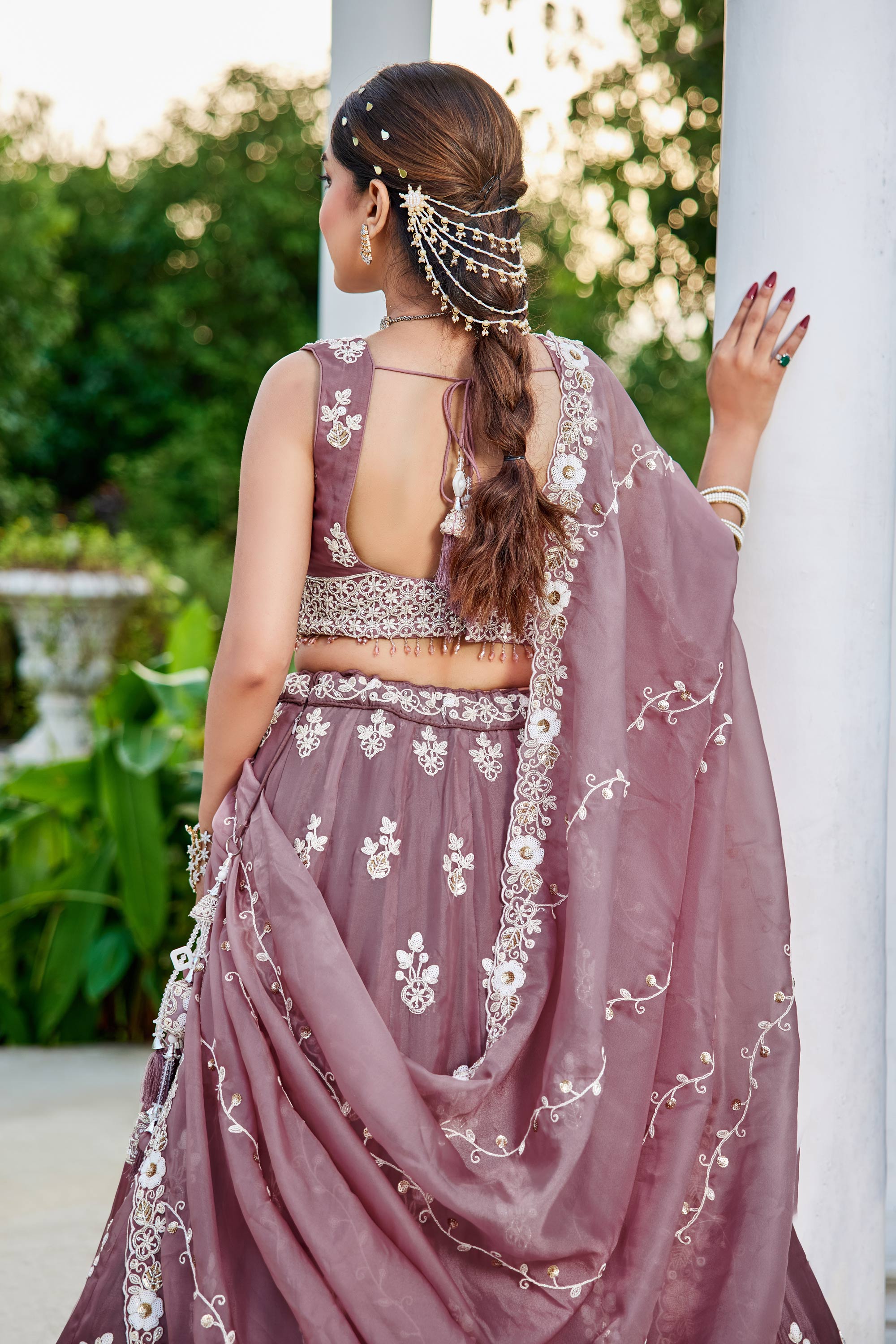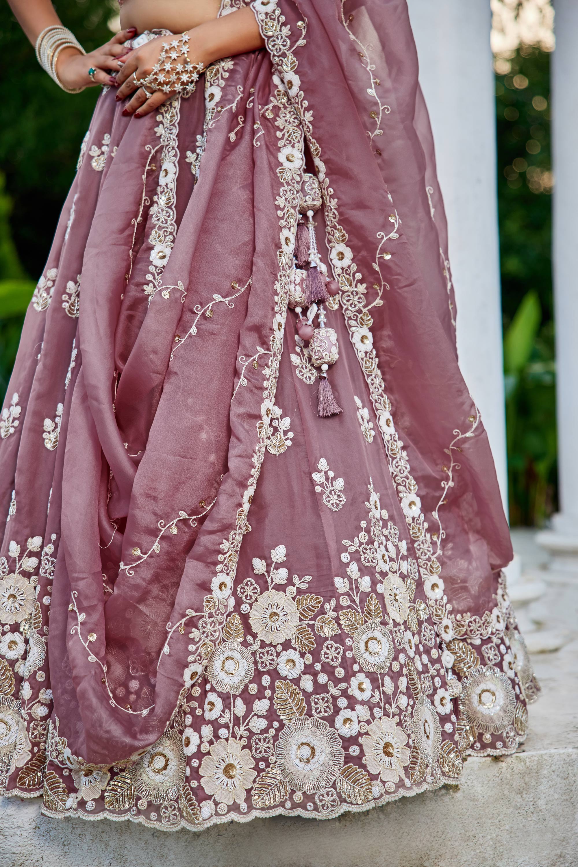 Embroidered Organza Lavender Lehenga Choli For Wedding Wear