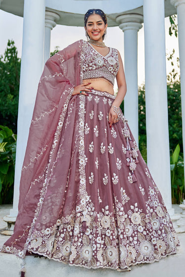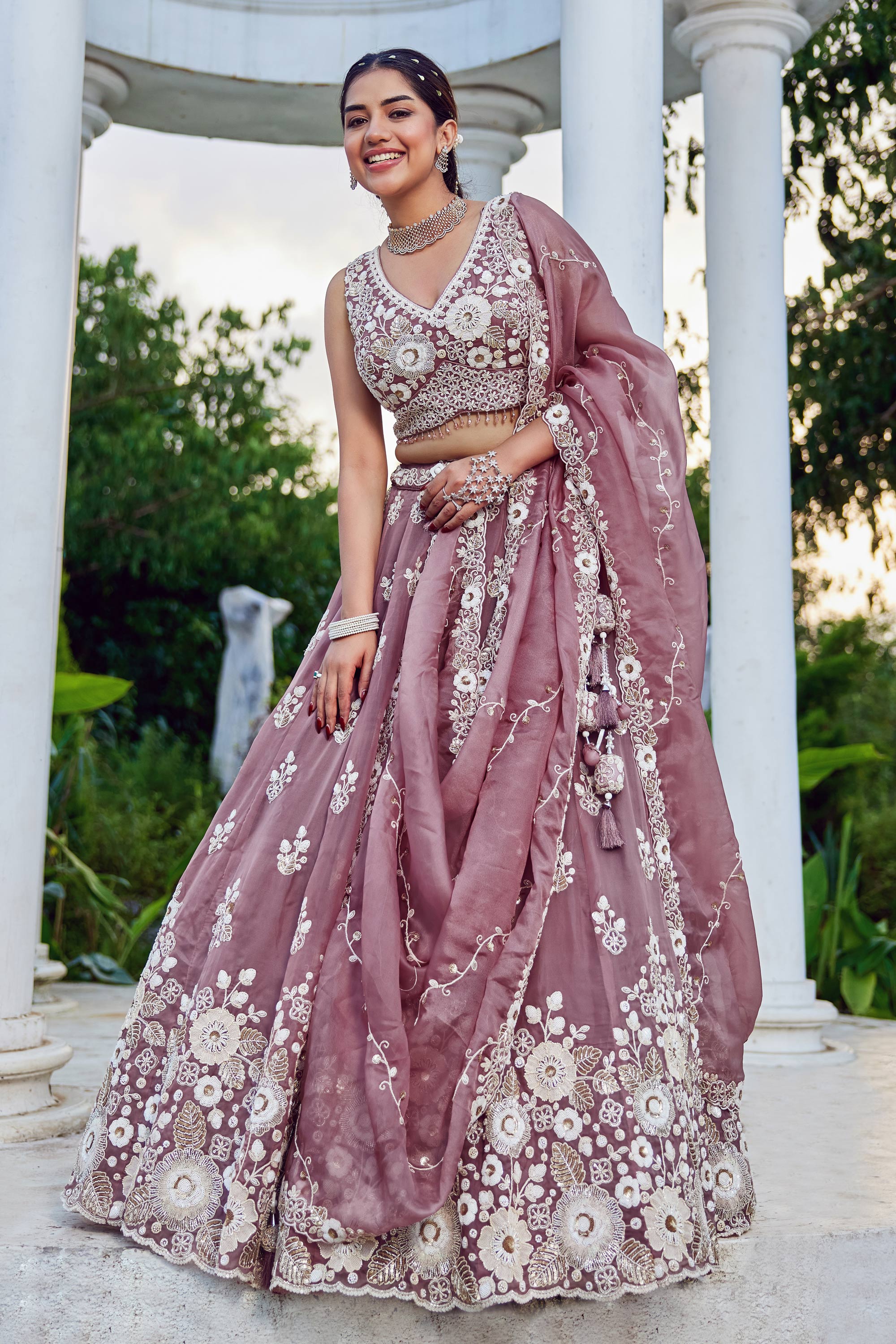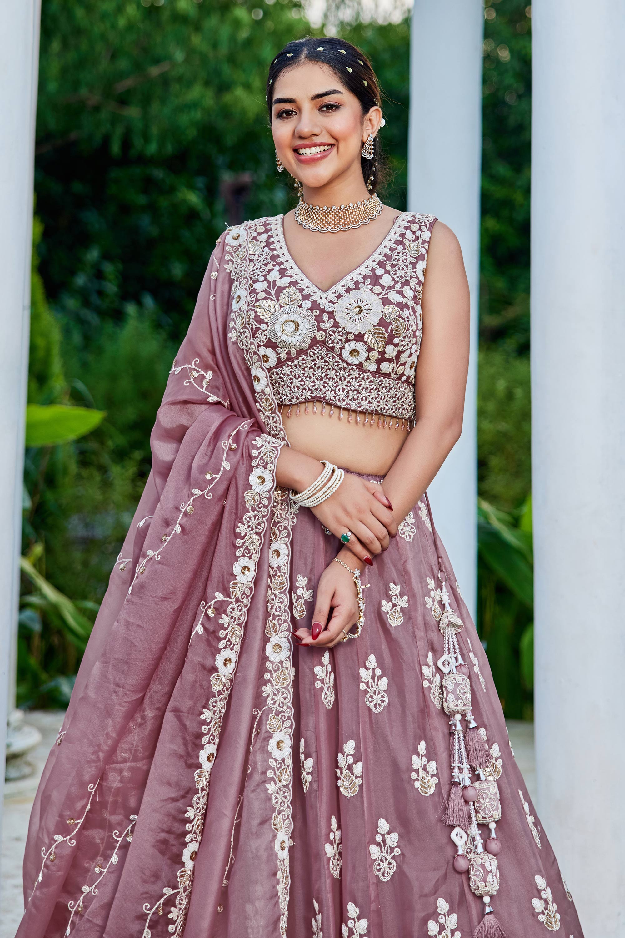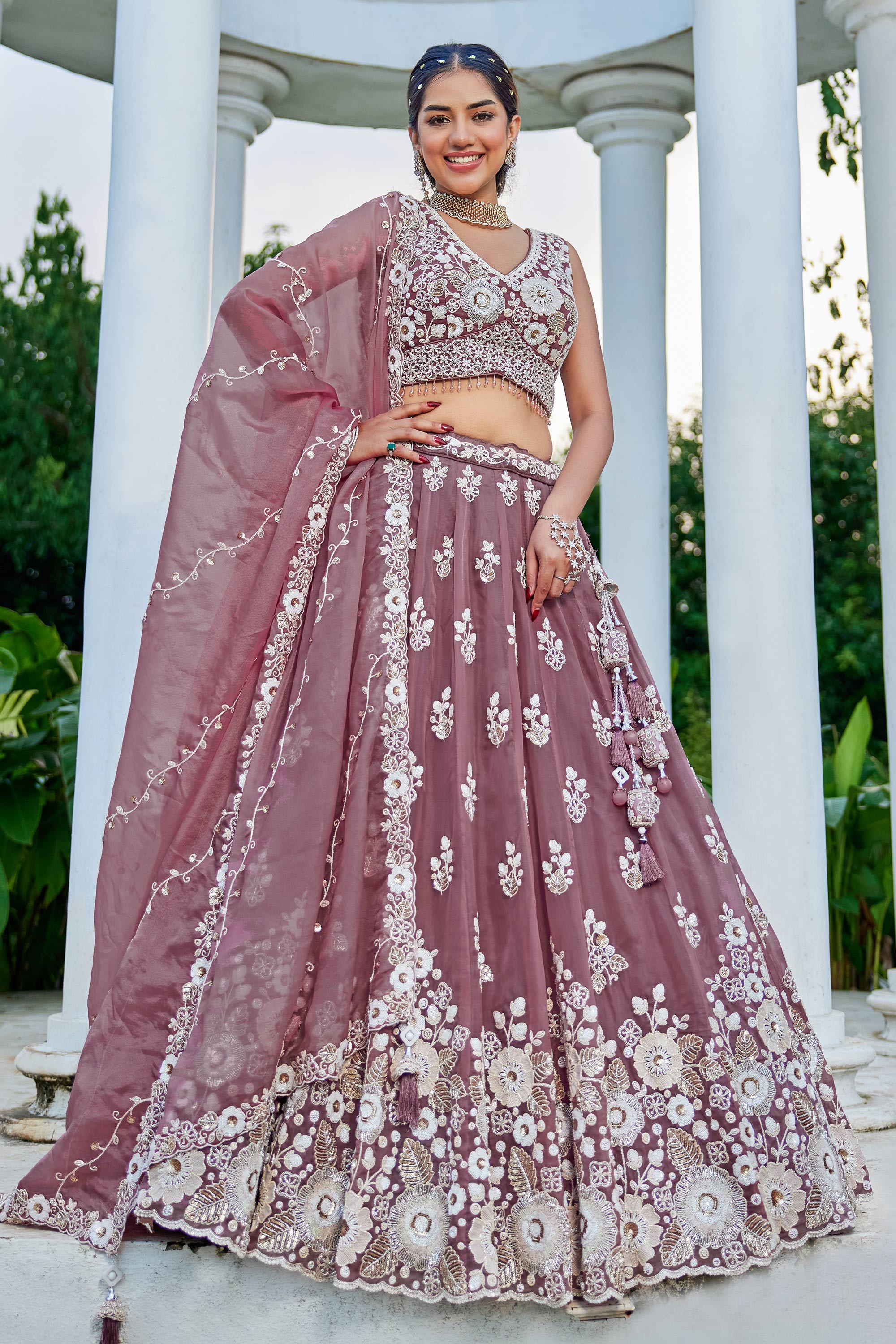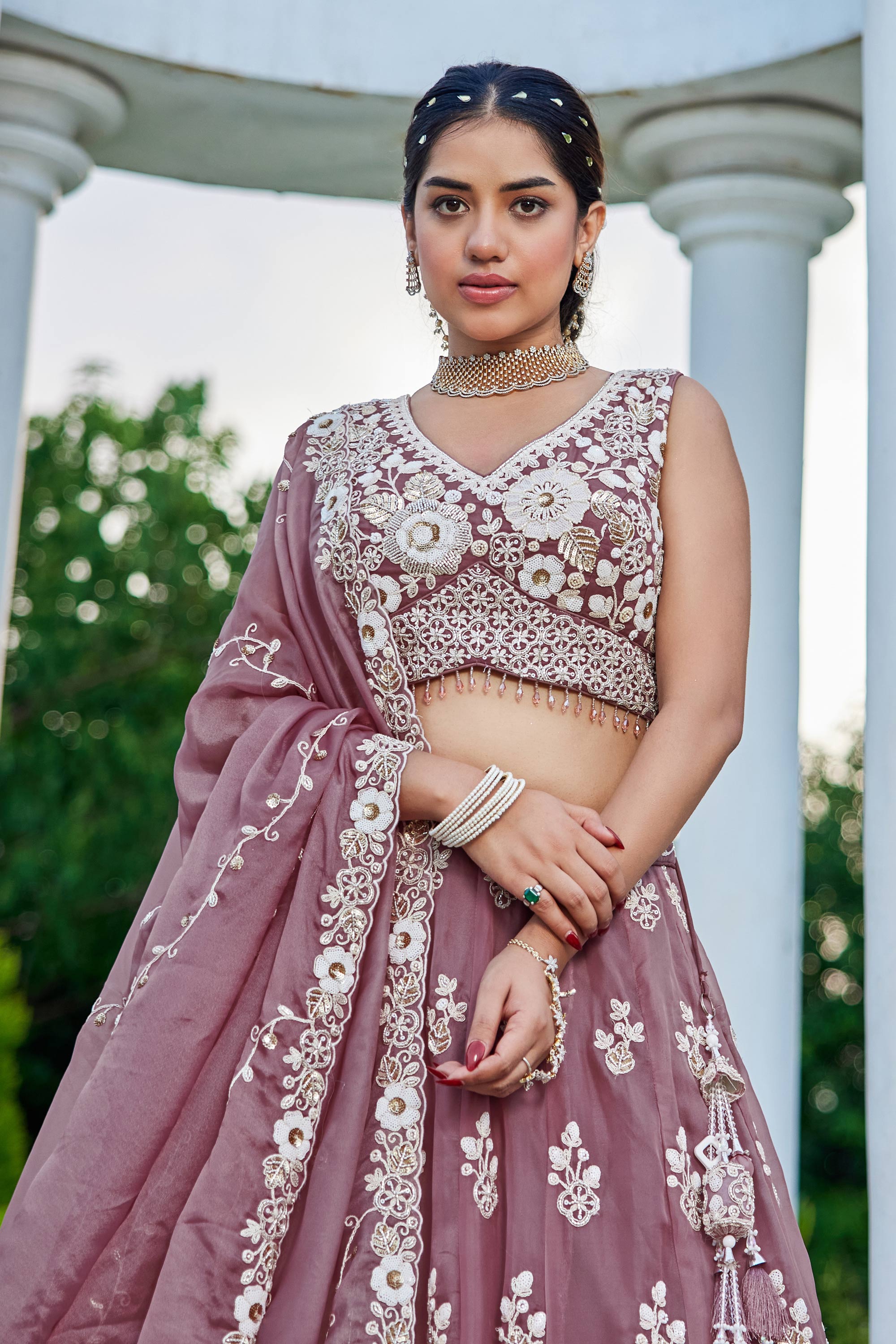 Embroidered Organza Lavender Lehenga Choli For Wedding Wear