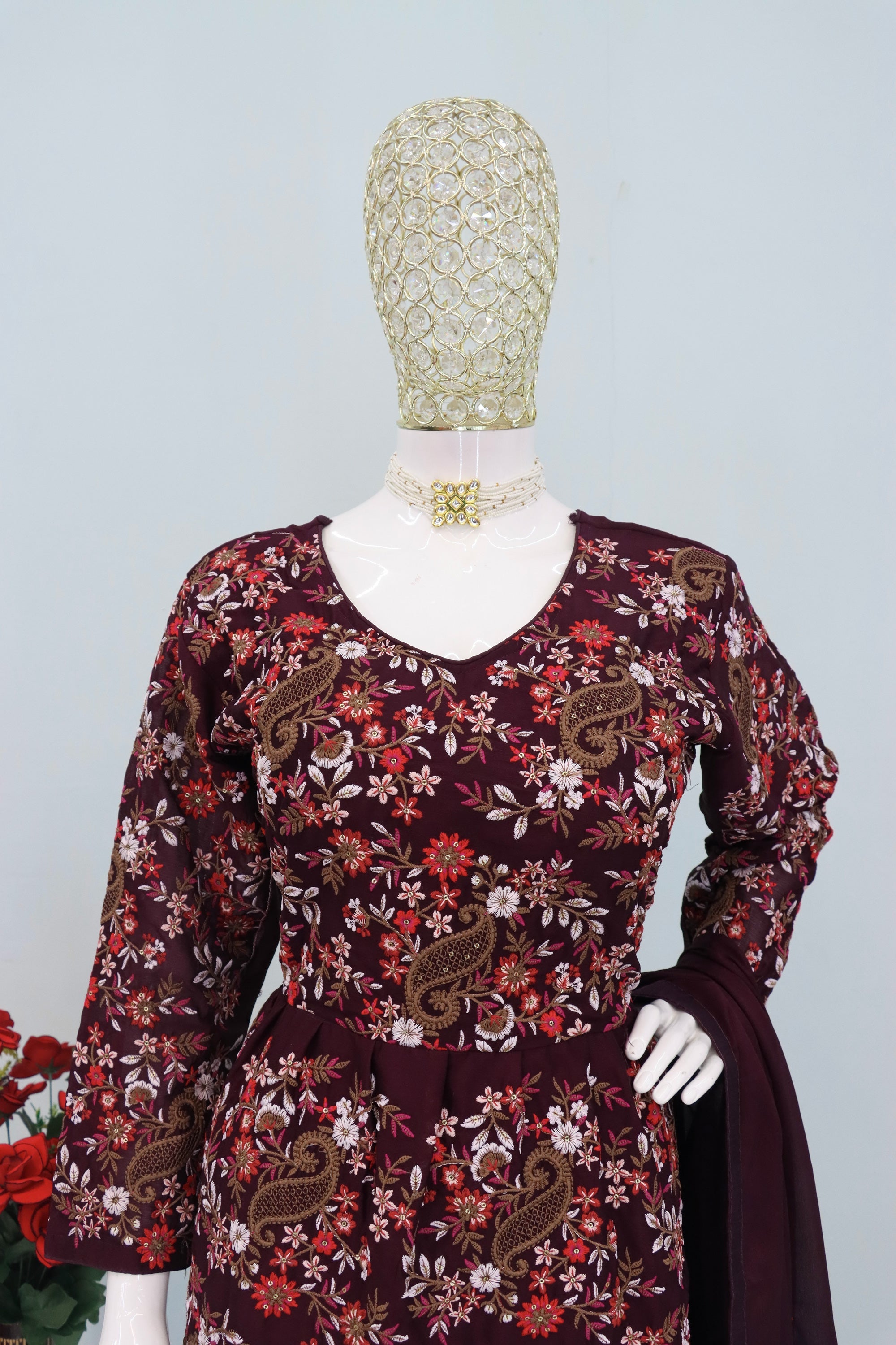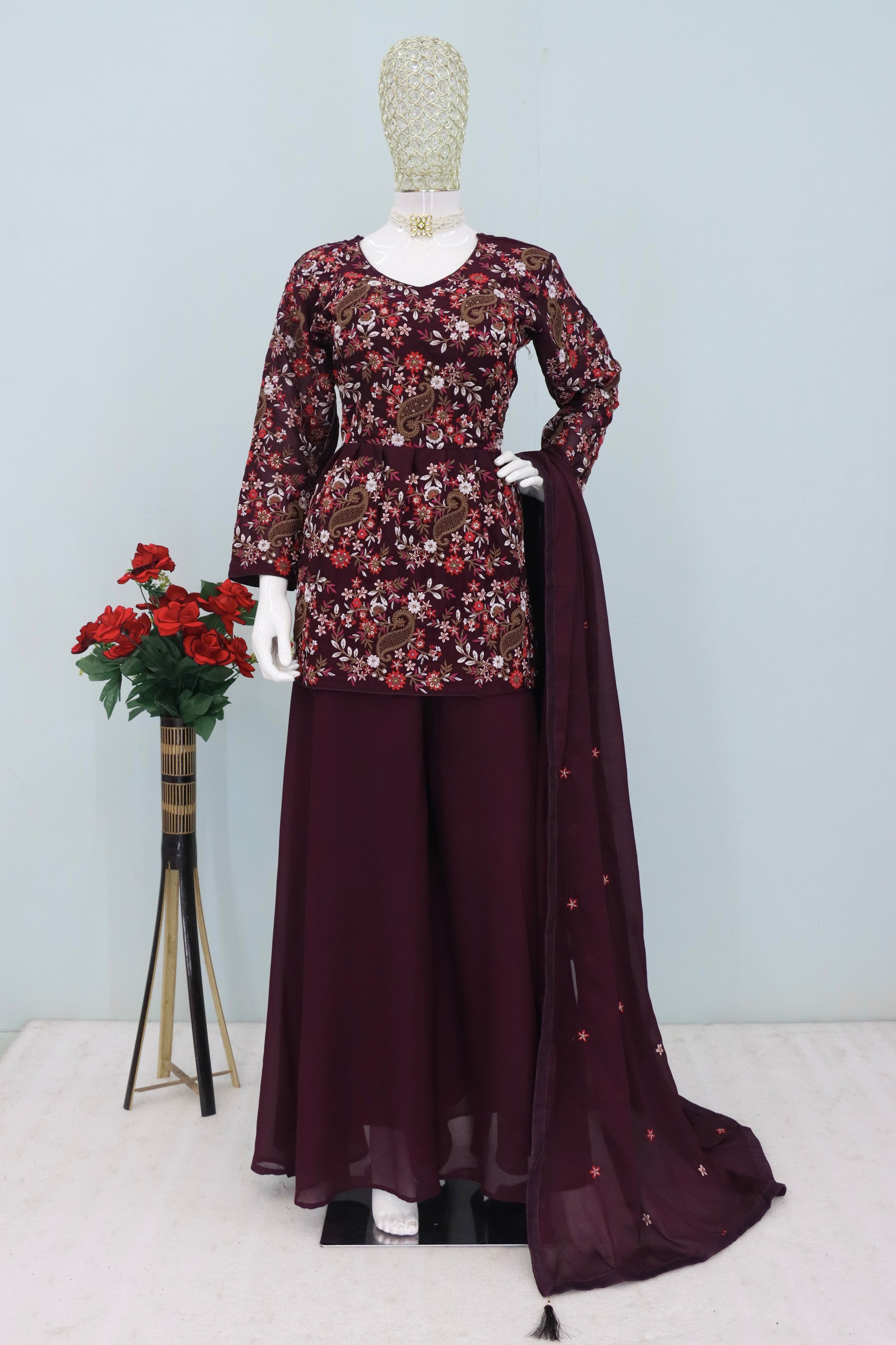 Upgrade your wardrobe with our Designer Reach Color Chinon Readymade Palazzo Suit with Embroidery Work. Perfect for those looking to add a touch of elegance to their attire, this suit is crafted from soft and smooth Chinon fabric. The stunning embroidery adds a sophisticated flair that sets it apart from the rest. Designed for comfort, the palazzo pants ensure you can move freely while maintaining a stylish silhouette. Ideal for weddings, parties, and festive occasions, this suit is a must-have for any fashion-forward individual.
