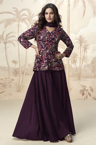 Embroidered Purple Readymade Palazzo Salwar Kameez In Chinon Fabric