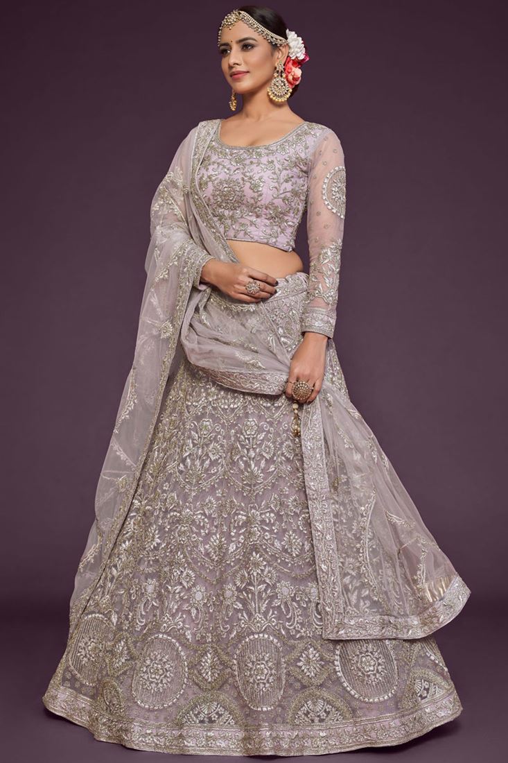 Embroidered Work On Cream Color Gorgeous Lehenga In Net Fabric