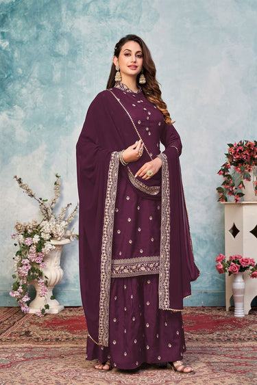 Embroidered Work Trendy Palazzo Suit In Wine Color
