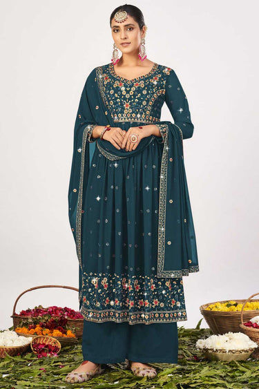 Engaging Teal Color Function Wear Georgette Pakistani Replica Suit