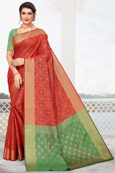 Entrancing Patola Silk Fabric Red Color Saree In Festival Wear