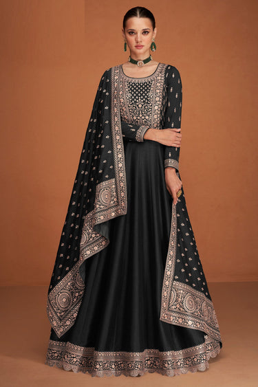 Eugeniya Belousova Alluring Art Silk Fabric Black Color Anarkali Suit