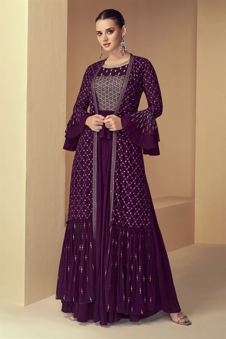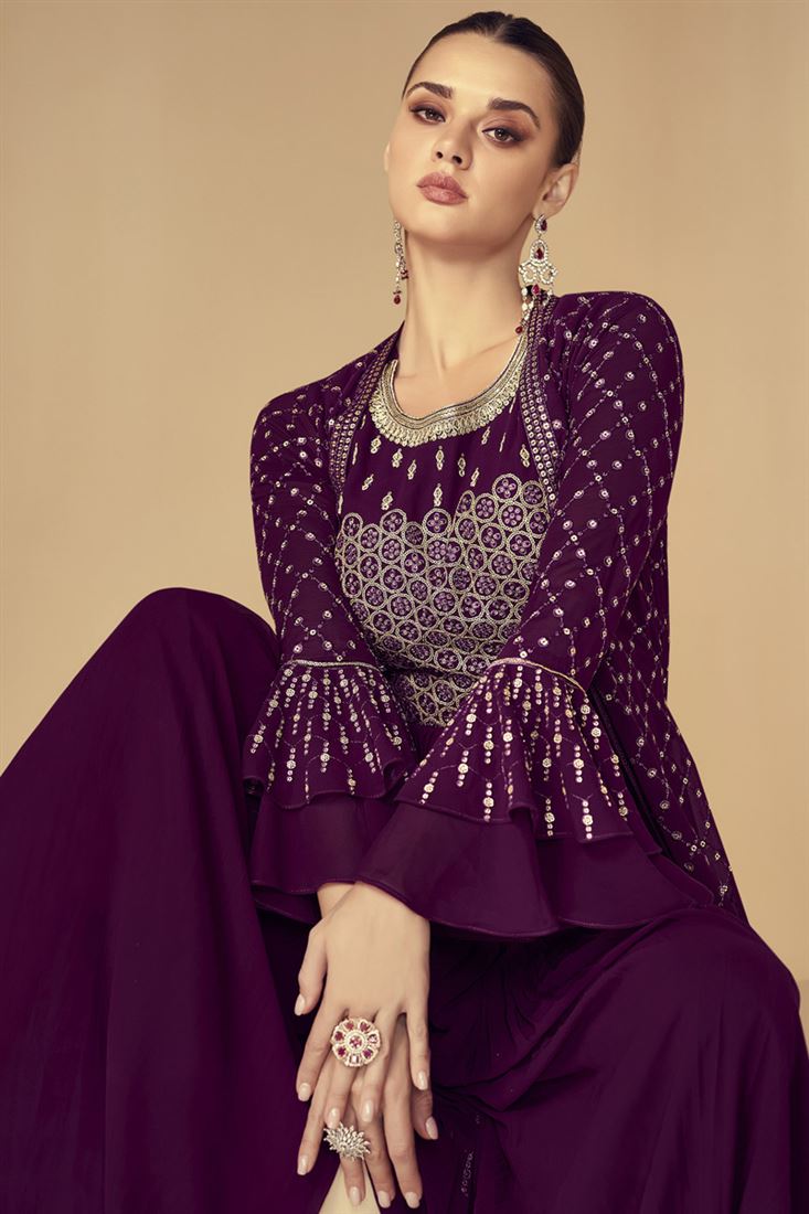 Eugeniya Belousova Charming Purple Color Georgette Fabric Palazzo Suit
