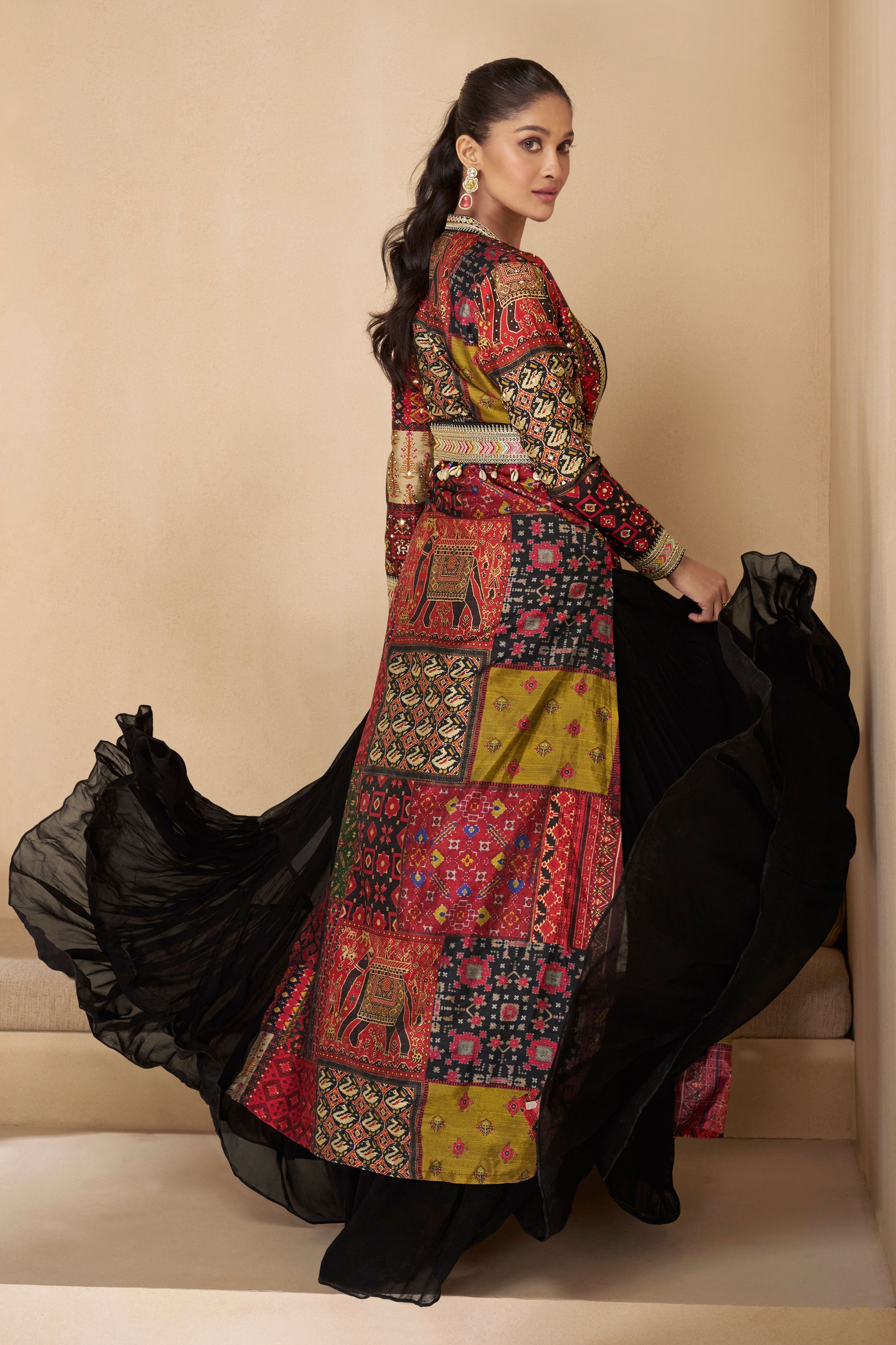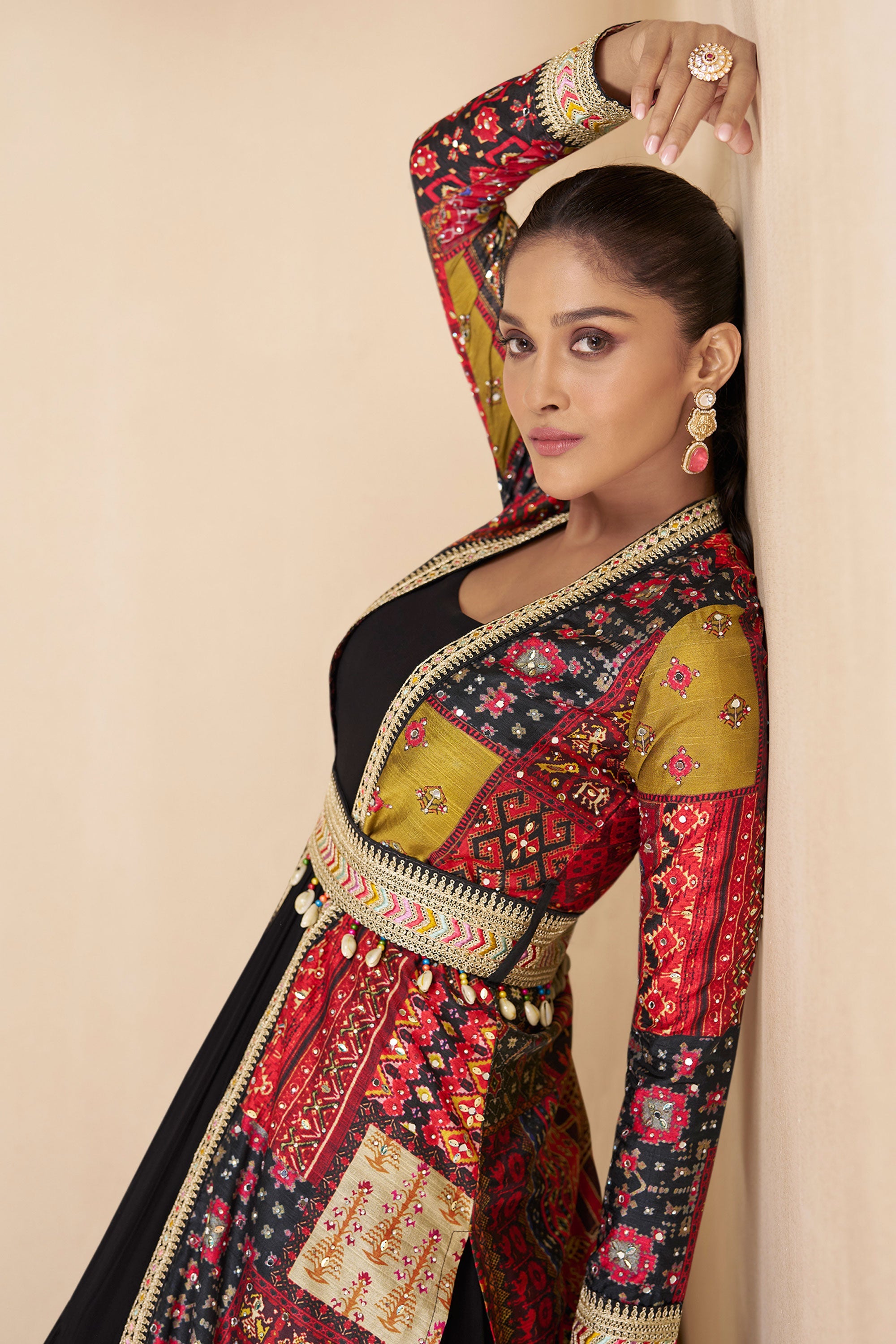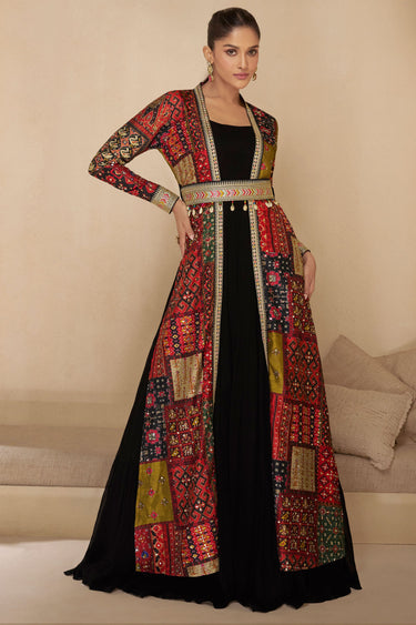 Eugeniya Belousova Fabulous Georgette Fabric Black Color Readymade Gown With Shrug