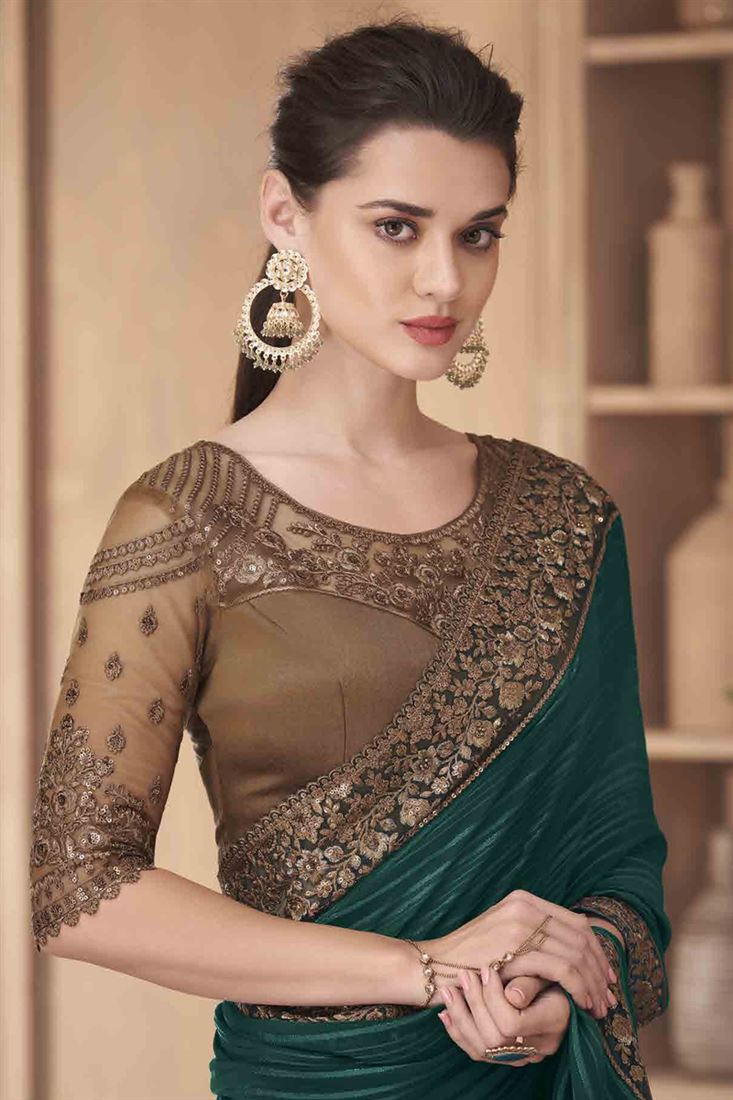 Eugeniya Belousova Fascinating Border Work Dark Green Color Art Silk Fabric Saree