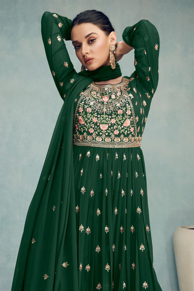 Eugeniya Belousova Green Georgette Palazzo Suit Function Wear