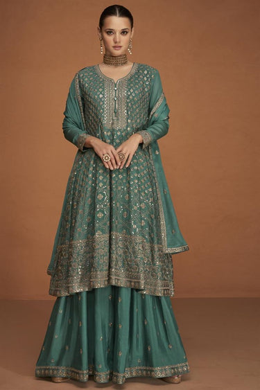 Eugeniya Belousova Sea Green Chinon Embroidered Sharara Suit
