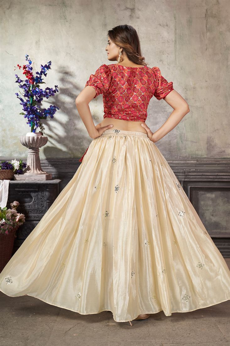 Exclusive Art Silk Fabric Off White Color Pleasance Top With Skirt
