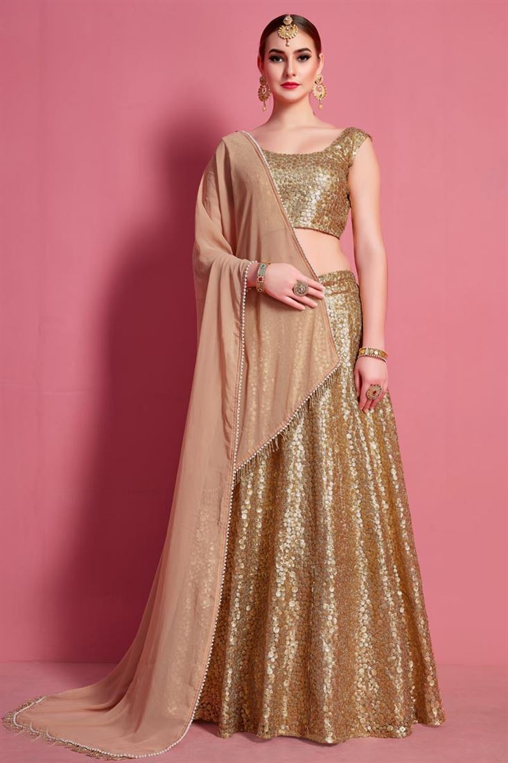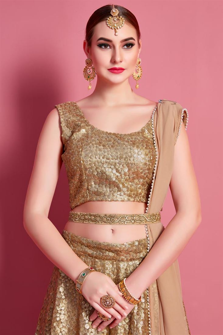 Exclusive Beige Color Net Fabric Embroidery Work Wedding Wear Lehenga Choli