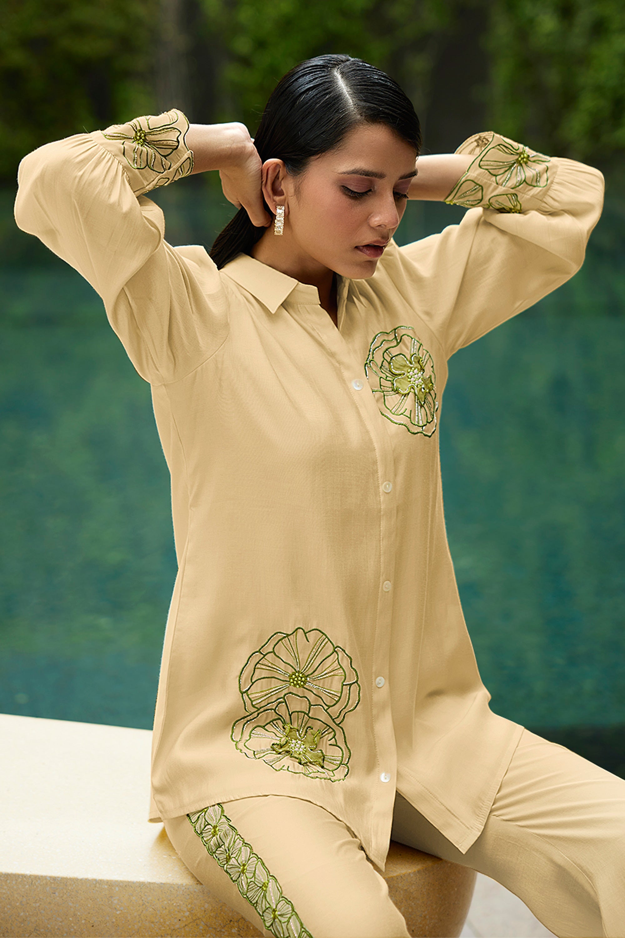 Exclusive Beige Color Viscose Fabric Daily Wear Embroidered Work Readymade Co-Ord Set