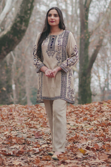 Exclusive Beige Muslin Fabric Floral Print Readymade Co-Ord Set