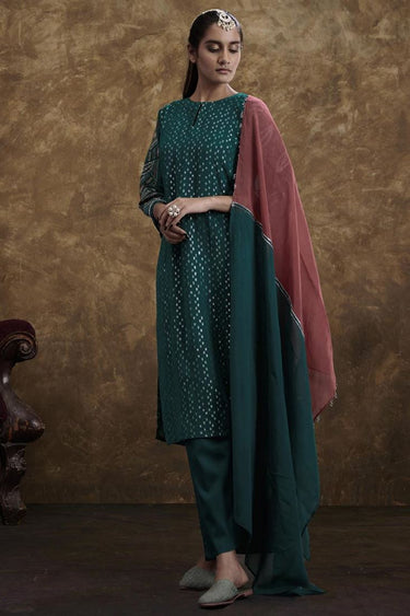 Exclusive Green Color Georgette Jacquard Fabric Alluring Readymade Kurta Set
