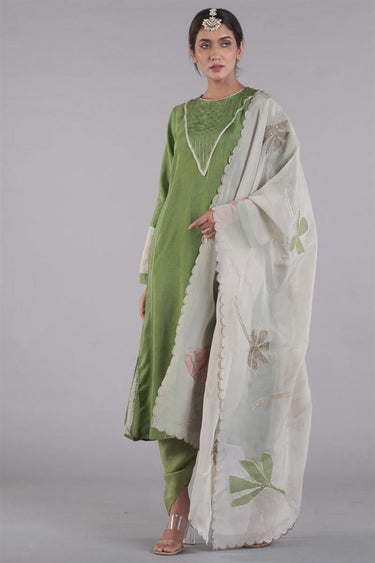 Exclusive Green Color Silk Fabric Hand Embroidered Fascinate Readymade Dhoti Set
