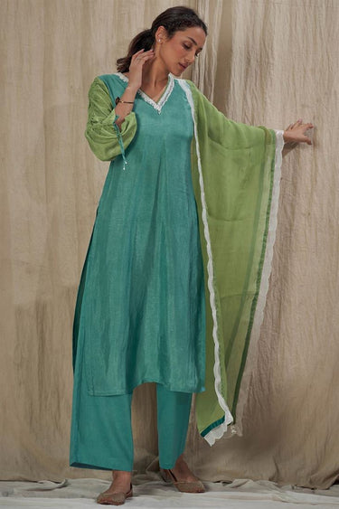 Exclusive Muslin Silk Fabric Readymade Palazzo Kurta Set In Teal Color