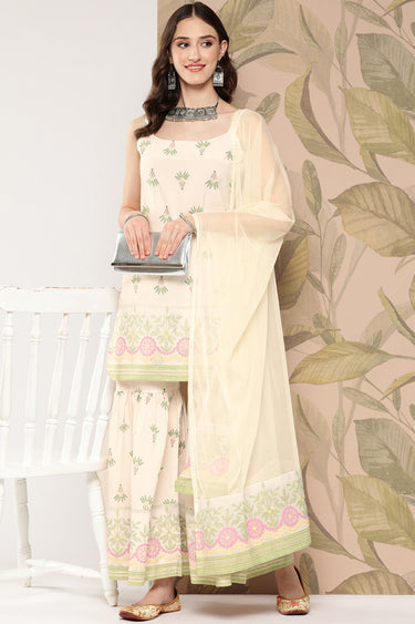 Exclusive Off White Crepe Fabric Daily Wear Floral Printed Readymade Top With Bottom Dupatta Set