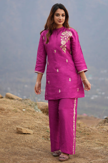 Exclusive Pink Art Silk Embroidered Co-Ord Set