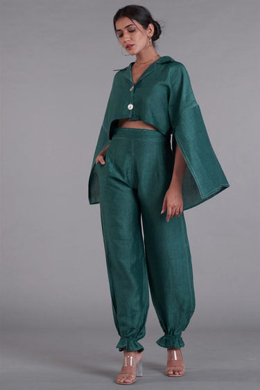 Exclusive Teal Color Linen Fabric Fancy Readymade Co Ord Set
