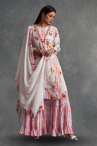 Exclusive White Color Crepe Fabric Printed Reception Wear Fancy Sharara Set