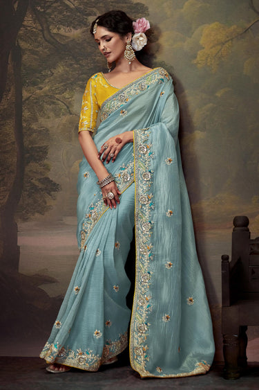 Exquisite Sky Blue Color Silk Festive Wear Saree