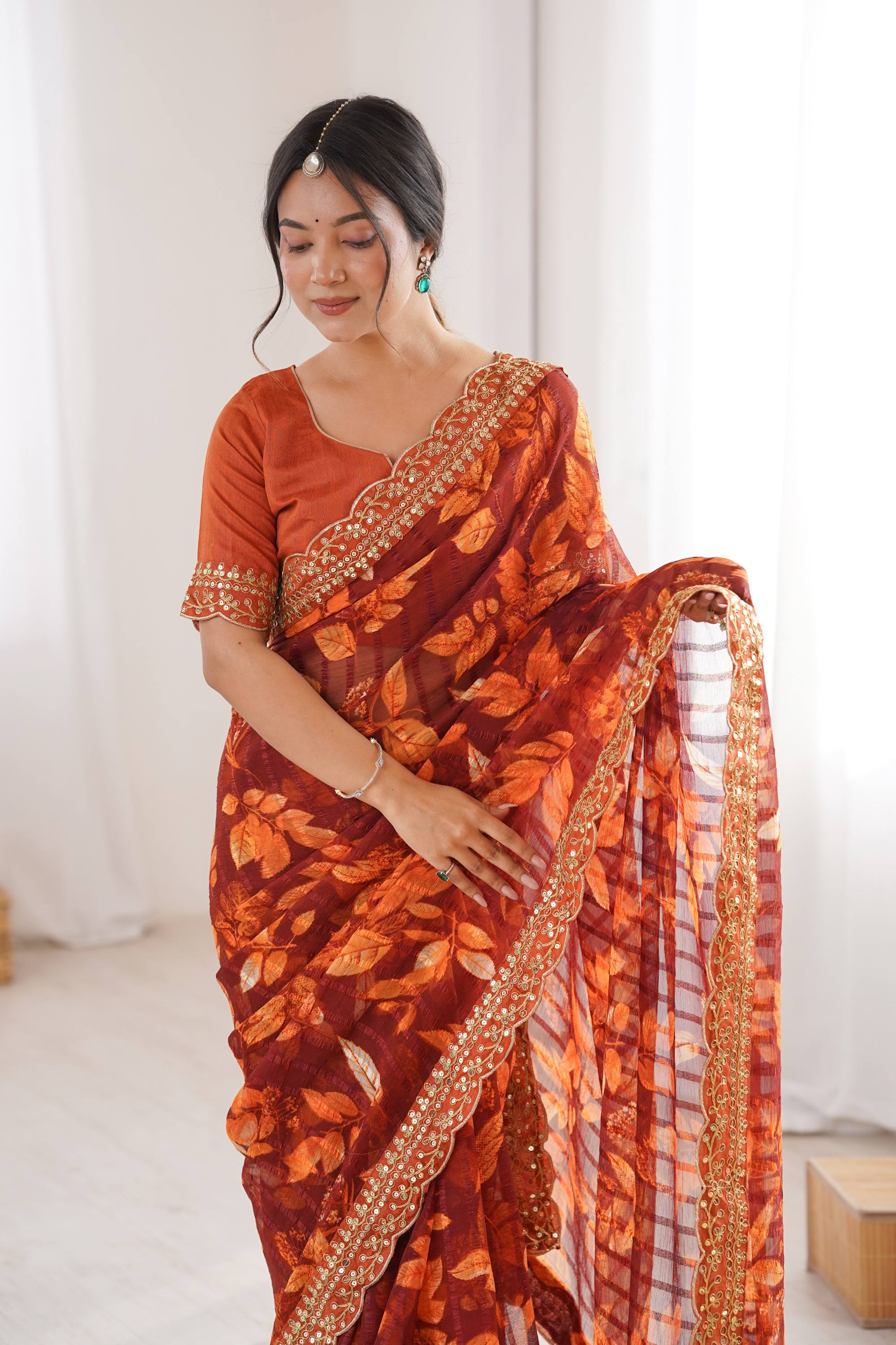 Please note that slight variations in color and shine may occur between the item you receive and its image on our website. These differences can be due to photographic effects, lighting conditions, and screen color calibration, which may vary across devices. Additionally, fabric dyes and weather conditions can influence the final shade of the product.