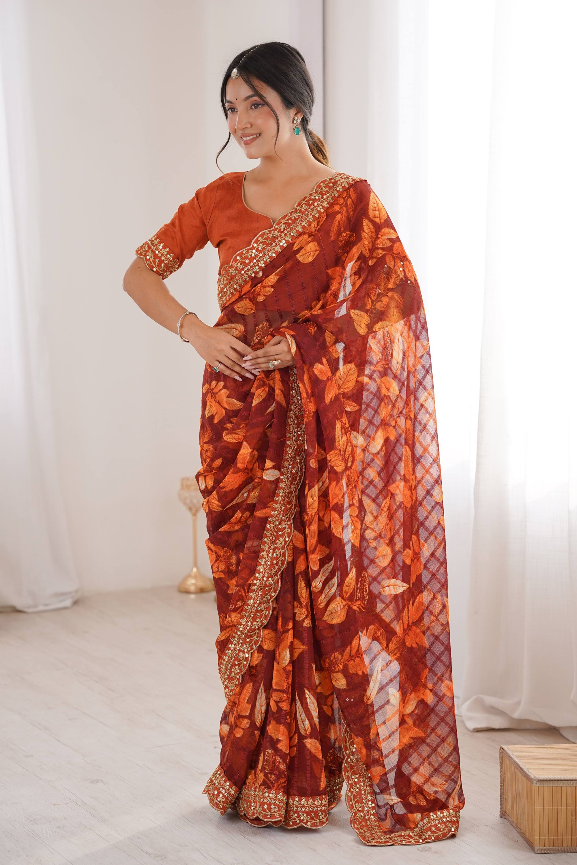 Fancy Fabric Printed Orange Casual Wear Saree