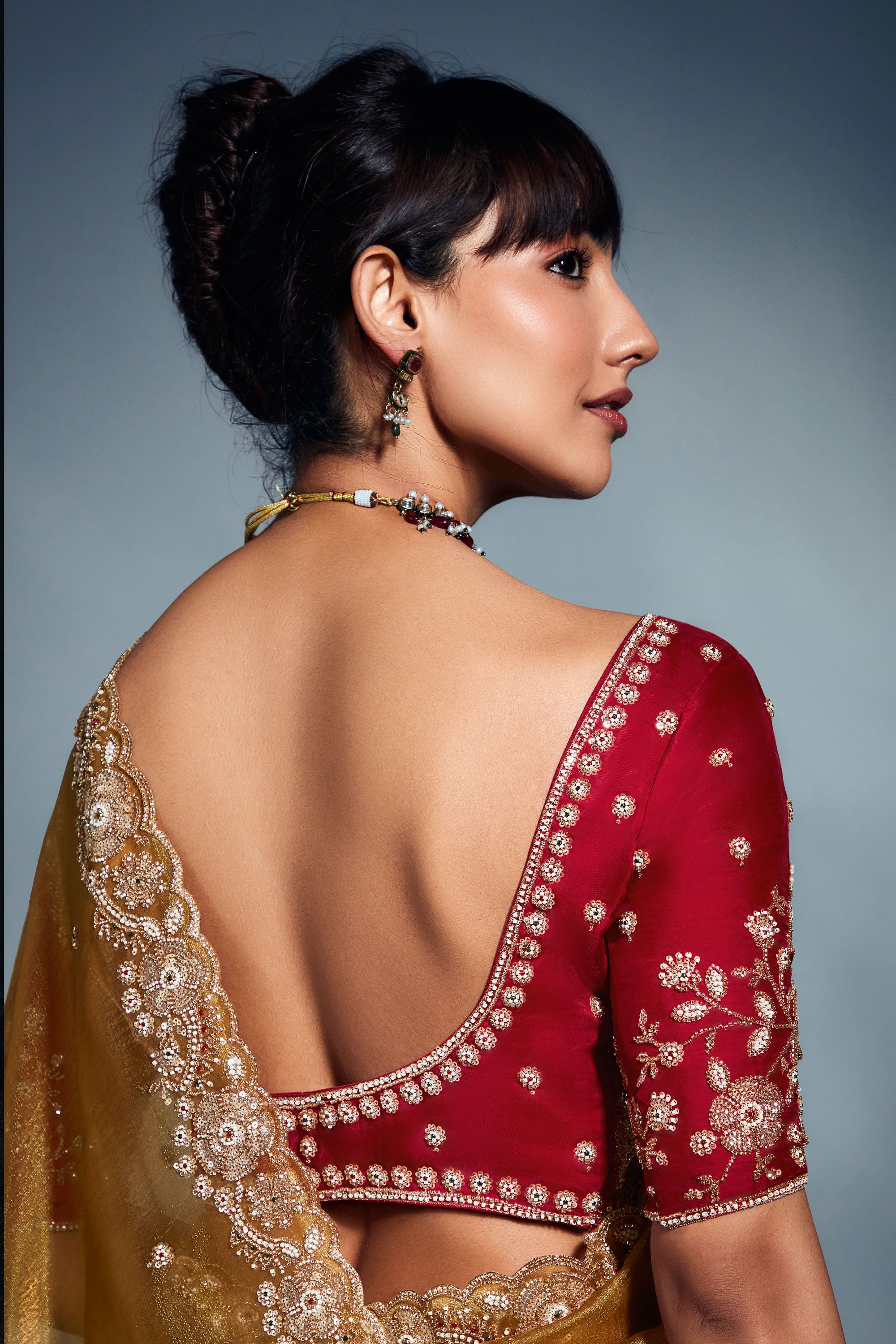 Wrap yourself in timeless grace with this Traditional Organza Saree, crafted to make every celebration unforgettable. The lightweight organza drapes beautifully, while the fancy heavy-work blouse elevates the ensemble with rich detailing. Intricate embroidery, shimmering sequins, and fine thread work create a delicate sparkle, making it the perfect choice for festivals, grand functions, and evening parties. Designed for women who appreciate both tradition and modern elegance, this saree ensures you look effortlessly radiant at every occasion. Please note: Due to digital photography, slight color variations may occur.
