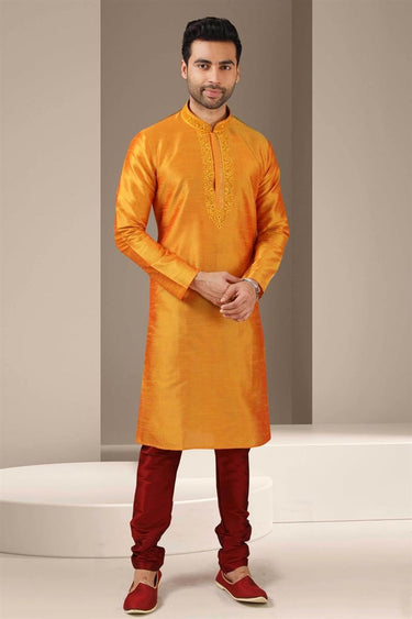 Fantastic Orange Color Banarasi Art Silk Fabric Kurta Pyjama