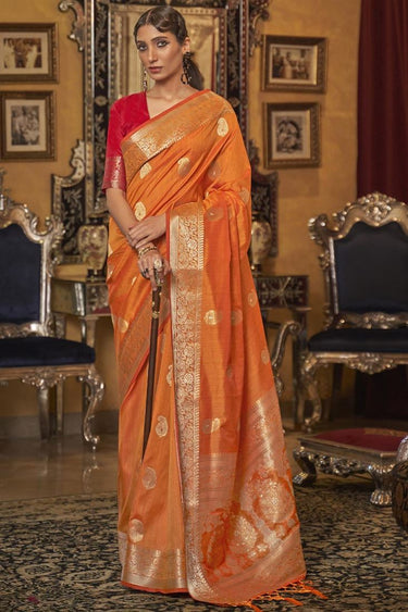 Festival Wear Art Silk Fabric Orange Color Weaving Work Mesmerizing Saree