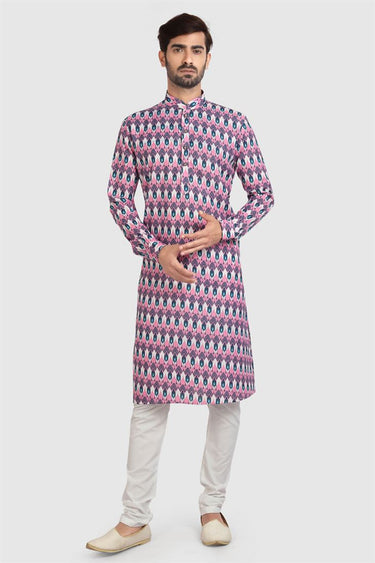 Festival Wear Cotton Fabric Printed Kurta Pyjama In Pink Color