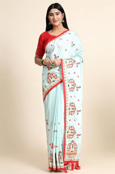 Festival Wear Crepe Silk Fabric Light Cyan Color Subline Embroidered Work Saree