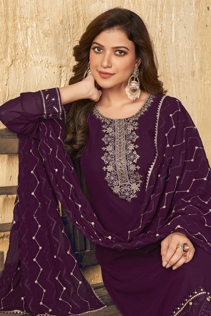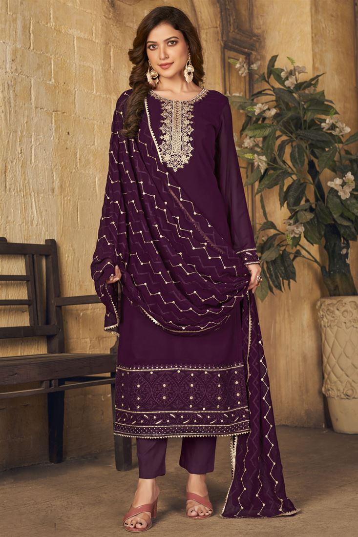 Festival Wear Purple Color Georgette Fabric Precious Salwar Suit With Embroidered Work