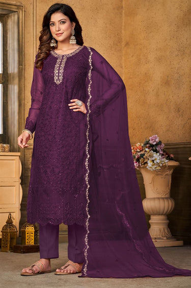 Festive Look Classic Net Fabric Salwar Suit In Purple Color