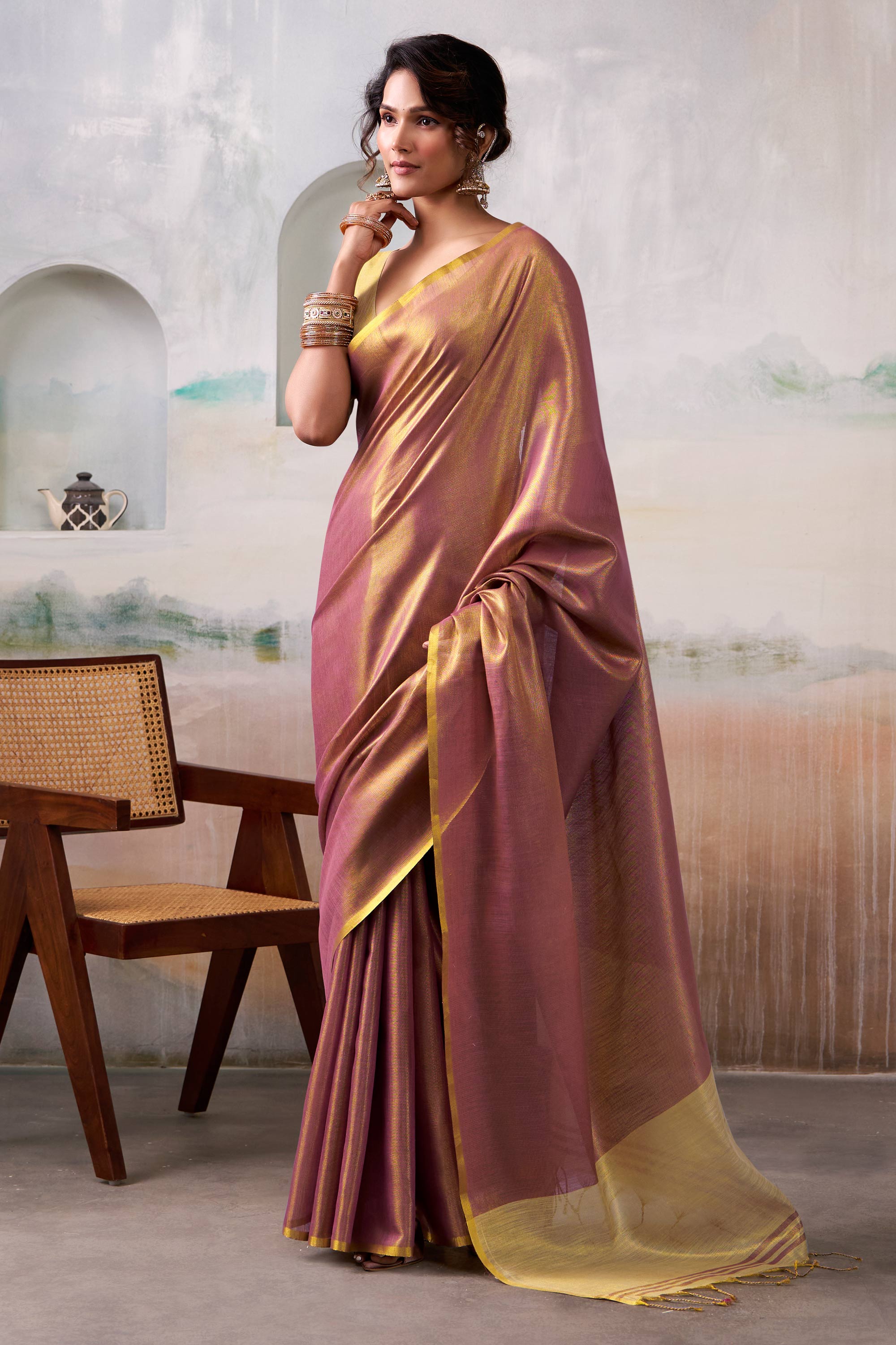 Festive Special Purple Tissue Handloom Saree