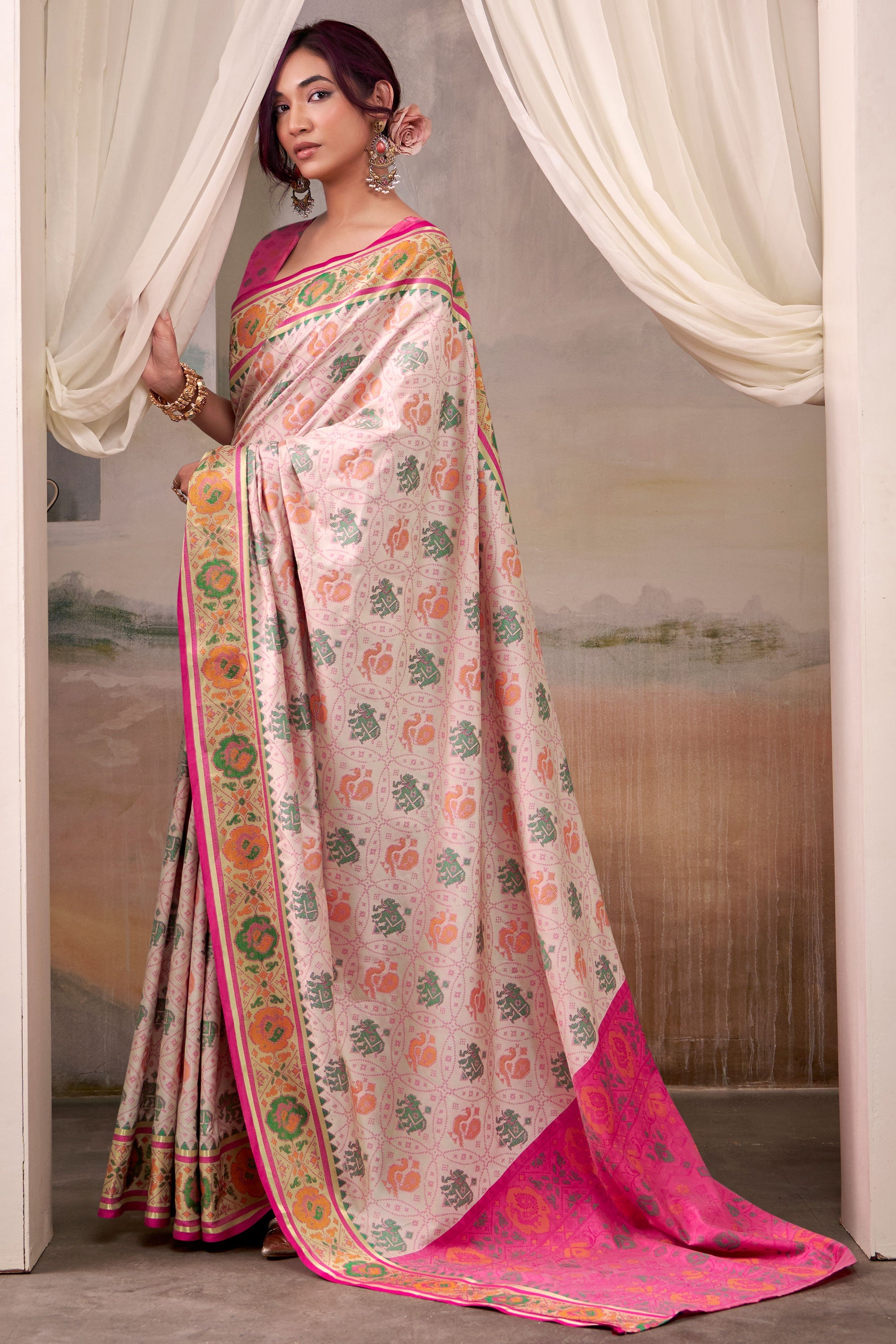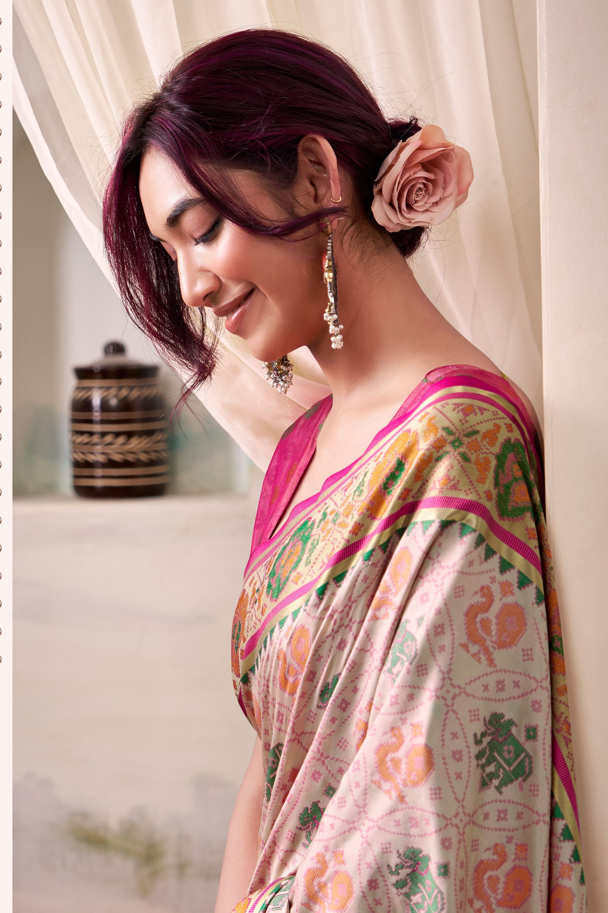 Festive Wear Beige Color Beatific Look Patola Silk Saree