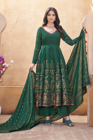Foil Print Teal Green Color Art Silk Readymade Palazzo Salwar Kameez