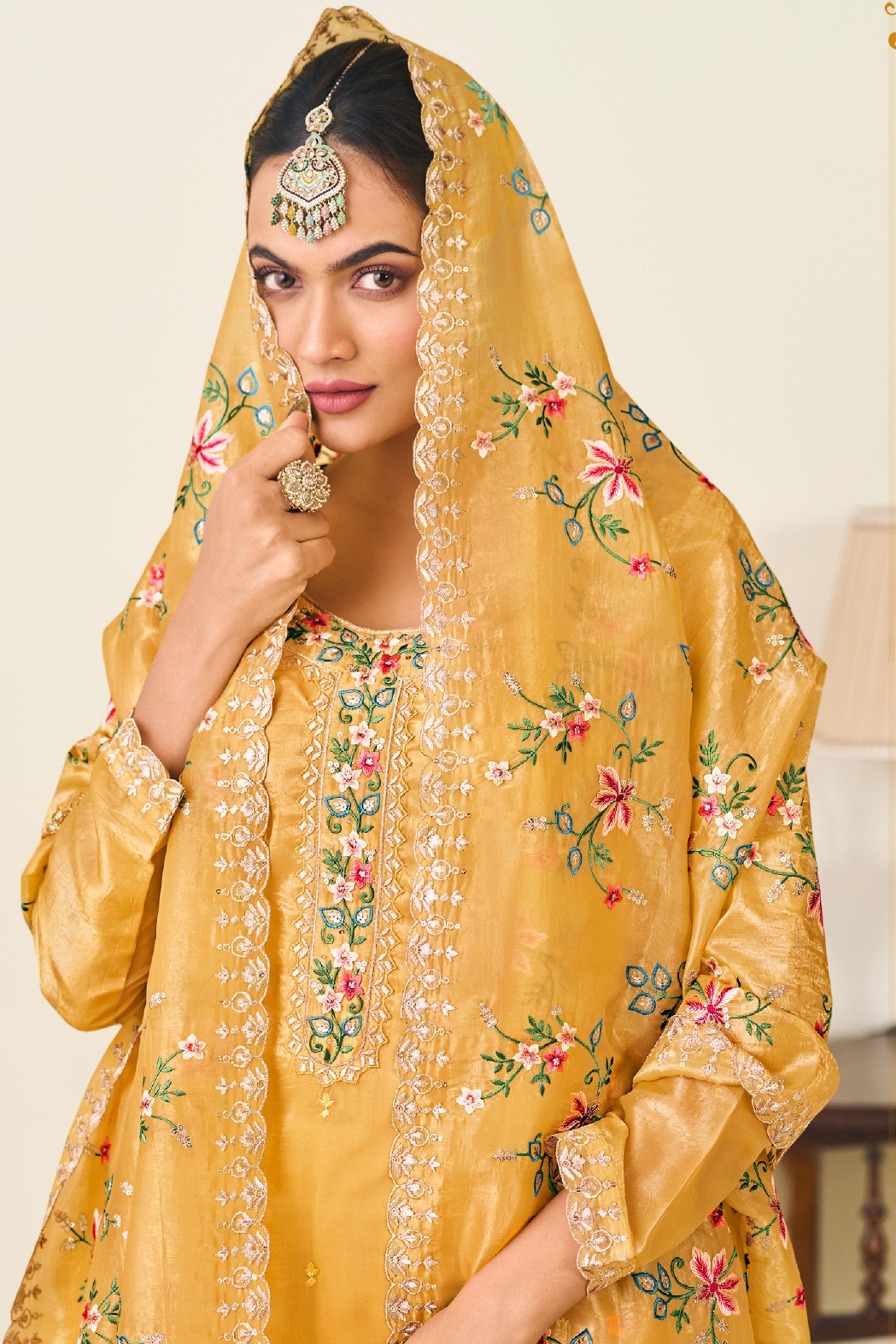 Function Wear Art Silk Fabric Designer Straight Cut Suit In Mustard Color