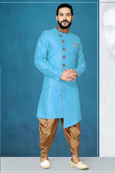Function Wear Art Silk Fabric Sky Blue Color Soothing Dhoti Style Indo Western