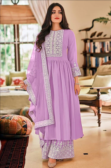 Function Wear Lavender Color Fabulous Pakistani Suit In Georgette Fabric