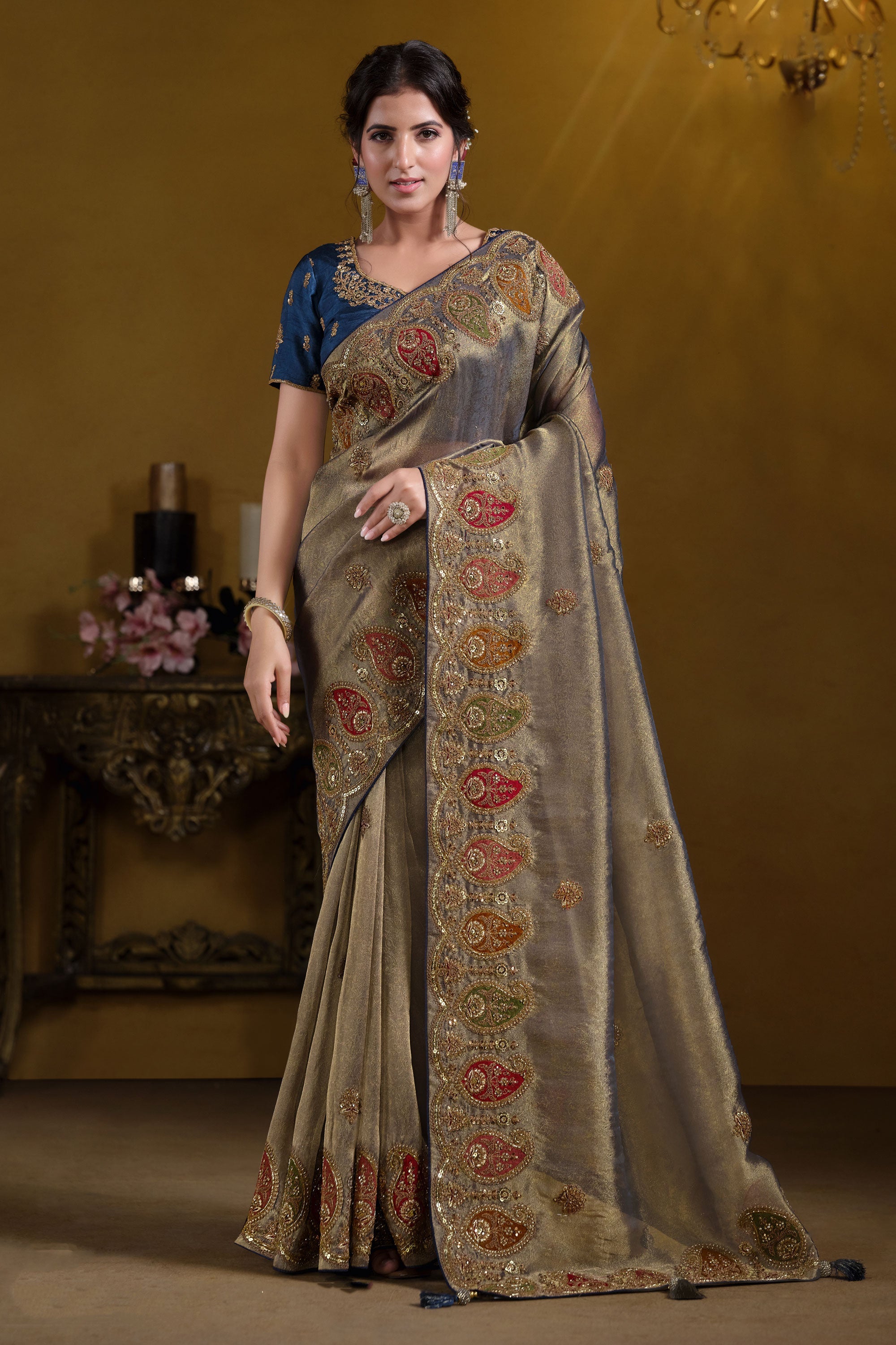 Introducing the Mesmeric Sequins Work Saree in Reach Color – a true testament to elegance and style. This saree is adorned with stunning sequins that catch the light beautifully, ensuring you look your best at any event. The reach color is both vibrant and sophisticated, offering a versatile option for various occasions. Made from premium materials, it guarantees long-lasting comfort. Perfect for weddings, parties, or any special gathering, this saree will make you feel graceful and confident.