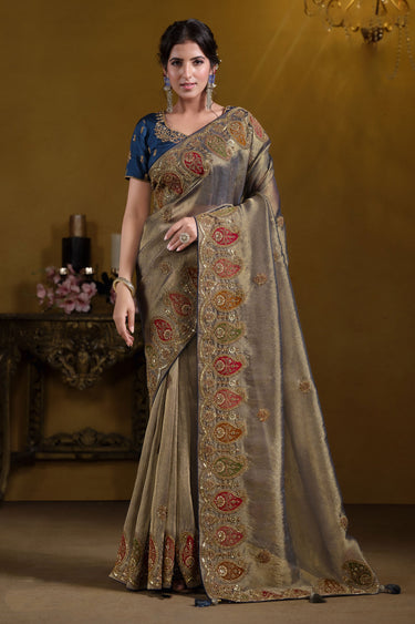 Georgette And Organza Silk Luxurious Sequins Work Saree In Teal Blue Color