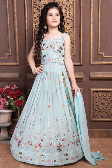 Georgette Engaging Light Cyan Color Festive Wear Readymade Kids Lehenga Choli