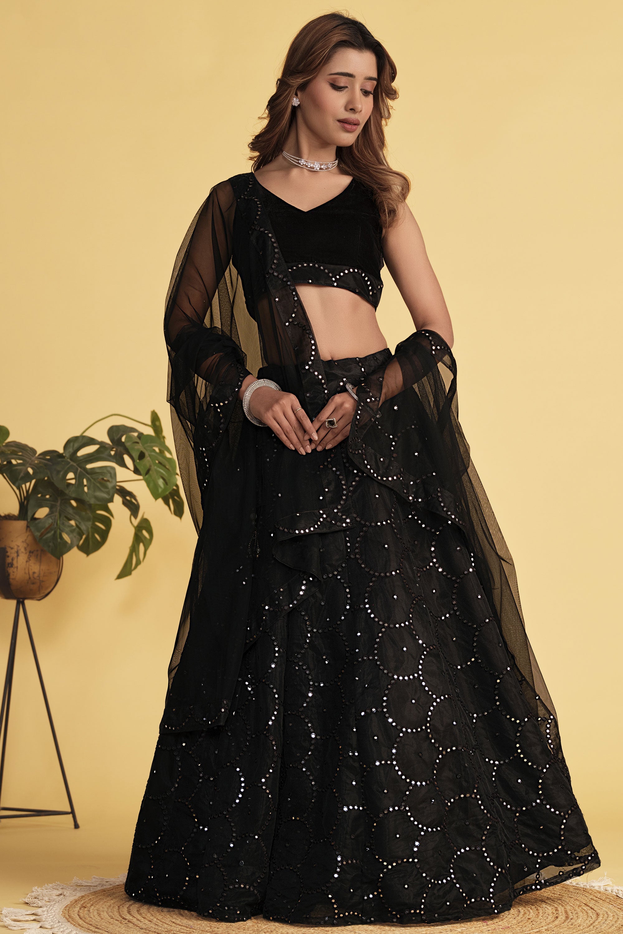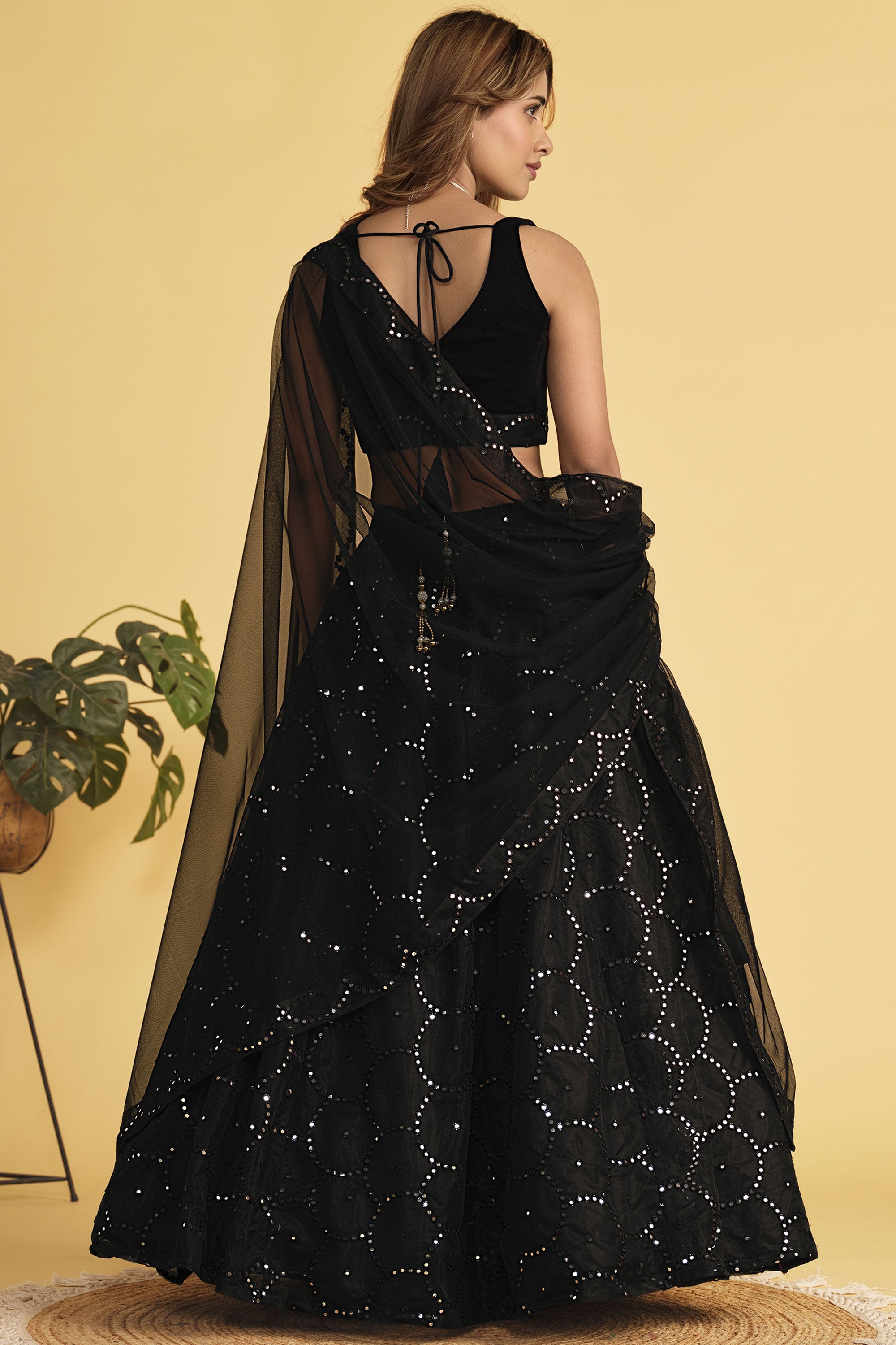 Georgette Fabric Black Color Gorgeous Look Sequins Work Lehenga