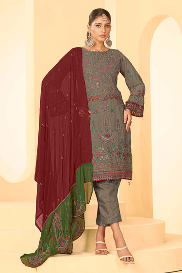 Georgette Fabric Dark Beige Color Party Style Elegant Pakistani Replica Suit