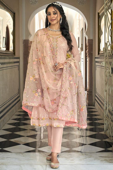Georgette Fabric Festive Look Lovely Salwar Suit In Pink Color